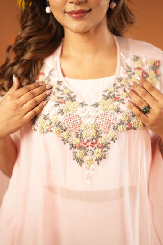 FAIRY PINK ORGANZA CAPE WITH TOP & PANTS