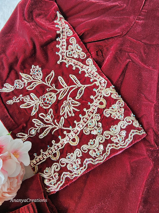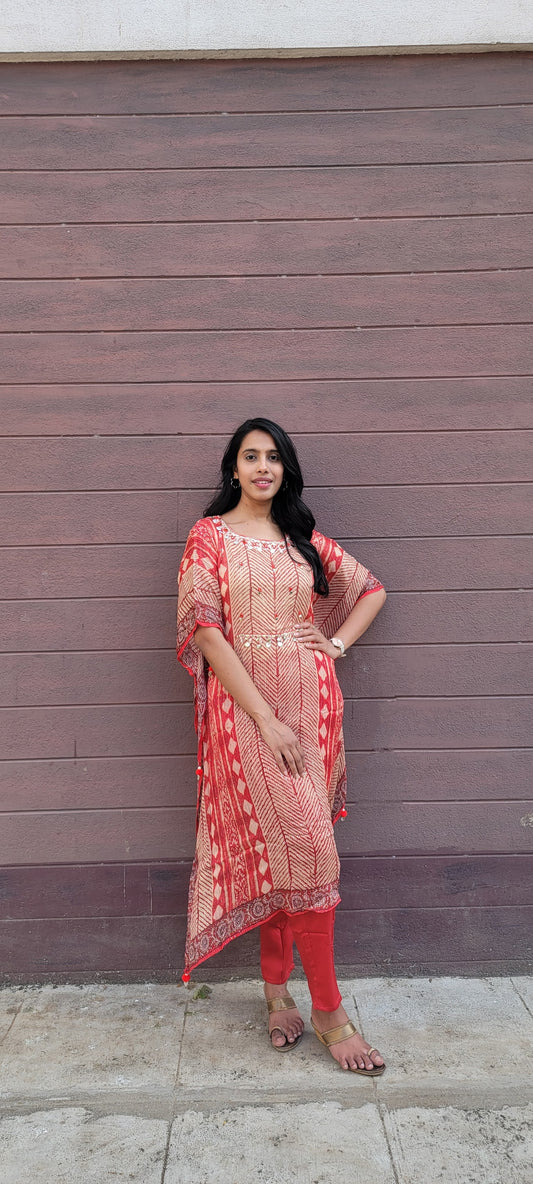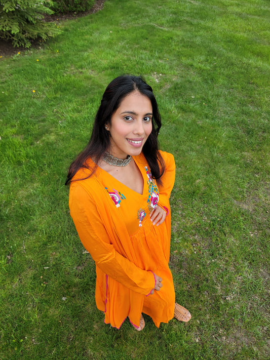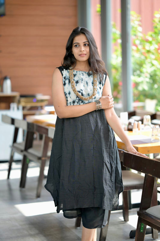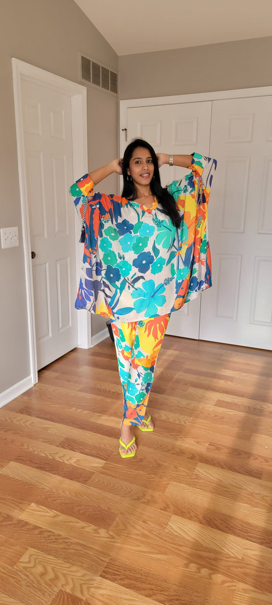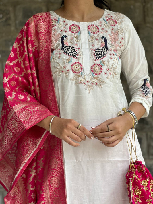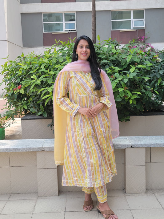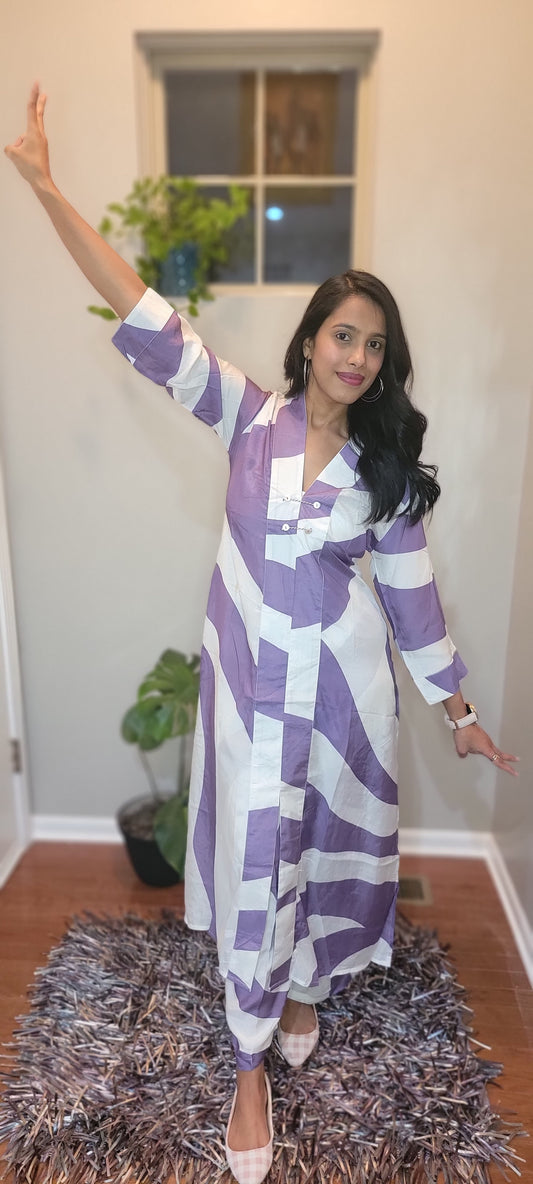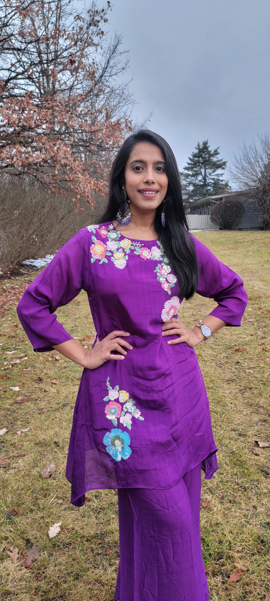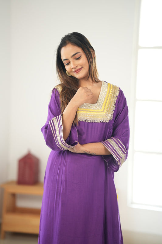 PURPLE & YELLOW GLASS NECKLINE KURTA SET
