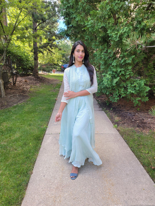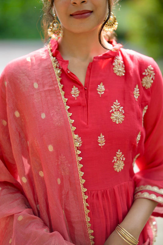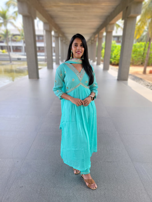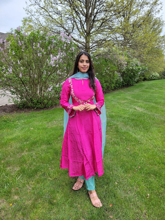 Sold outPINK & BLUE UPPADA SILK ANARKALI