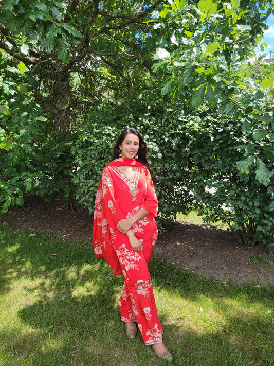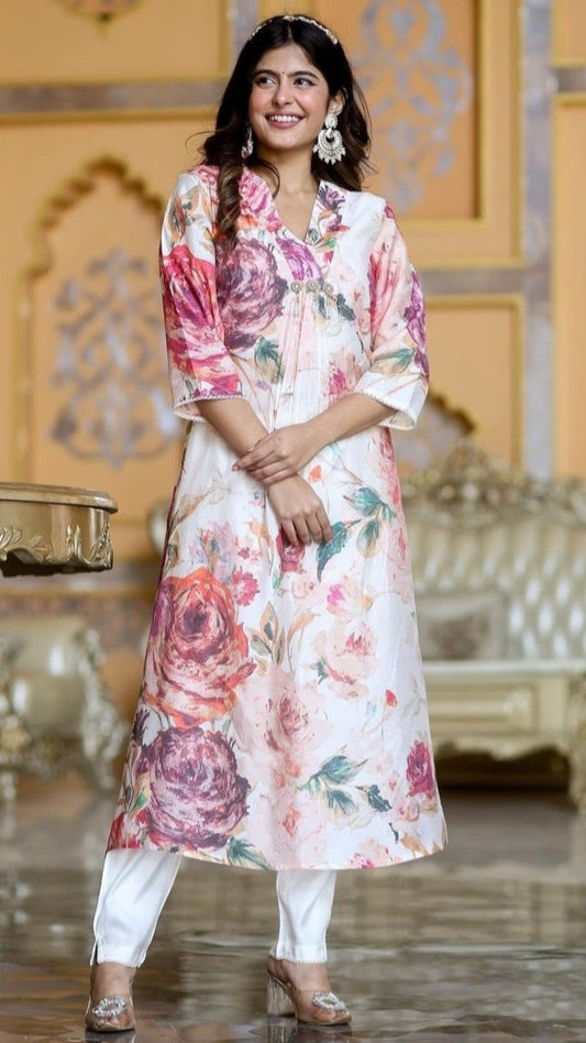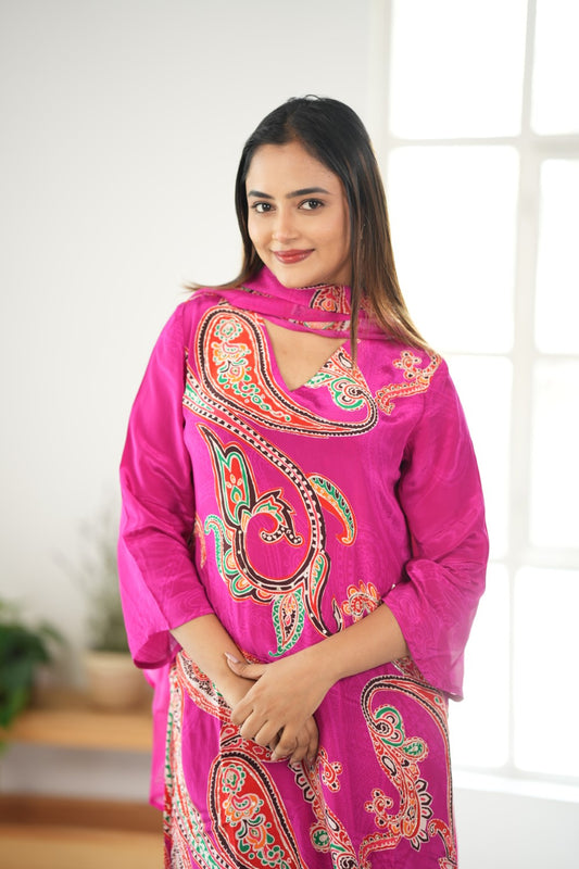 METALLIC CREPE PINK PAISELY 3D PRINT SUIT