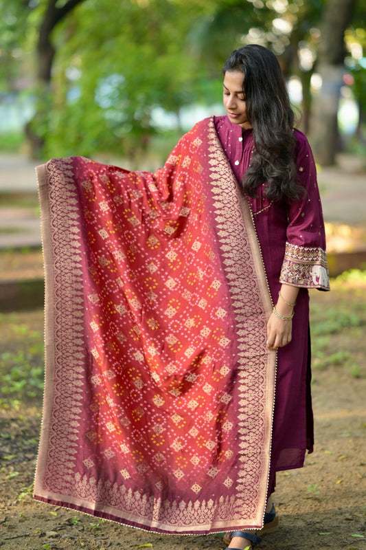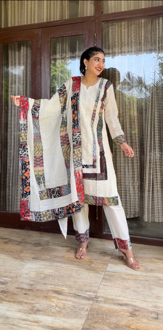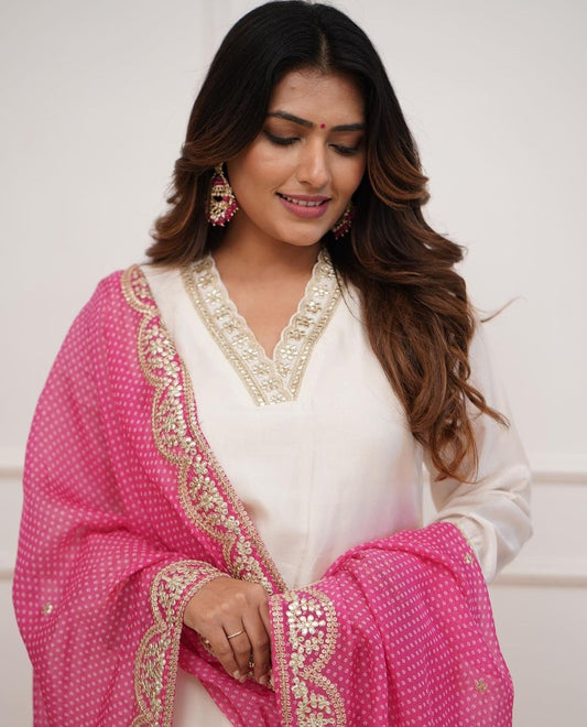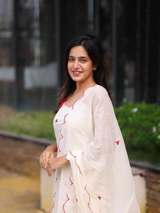 MUSLIN WHITE WITH BHANDINI SHAWL