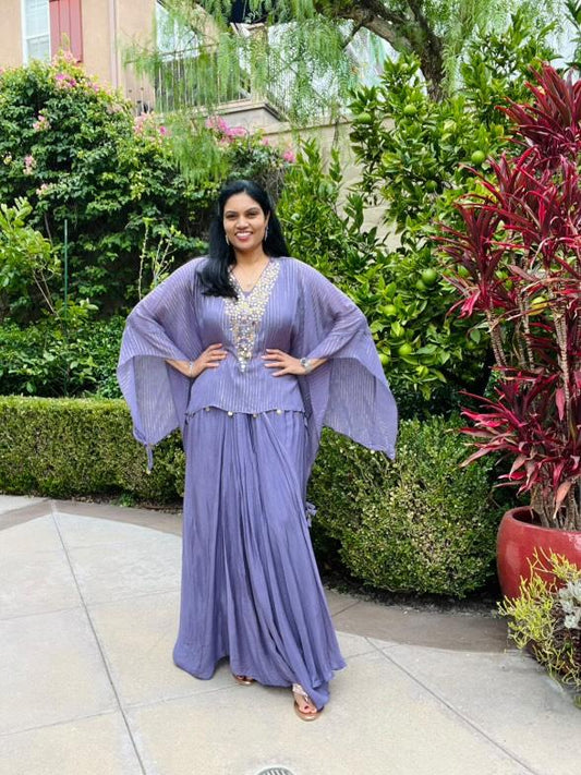 ICE PURPLE CROP TOP SKIRT & SHRUG