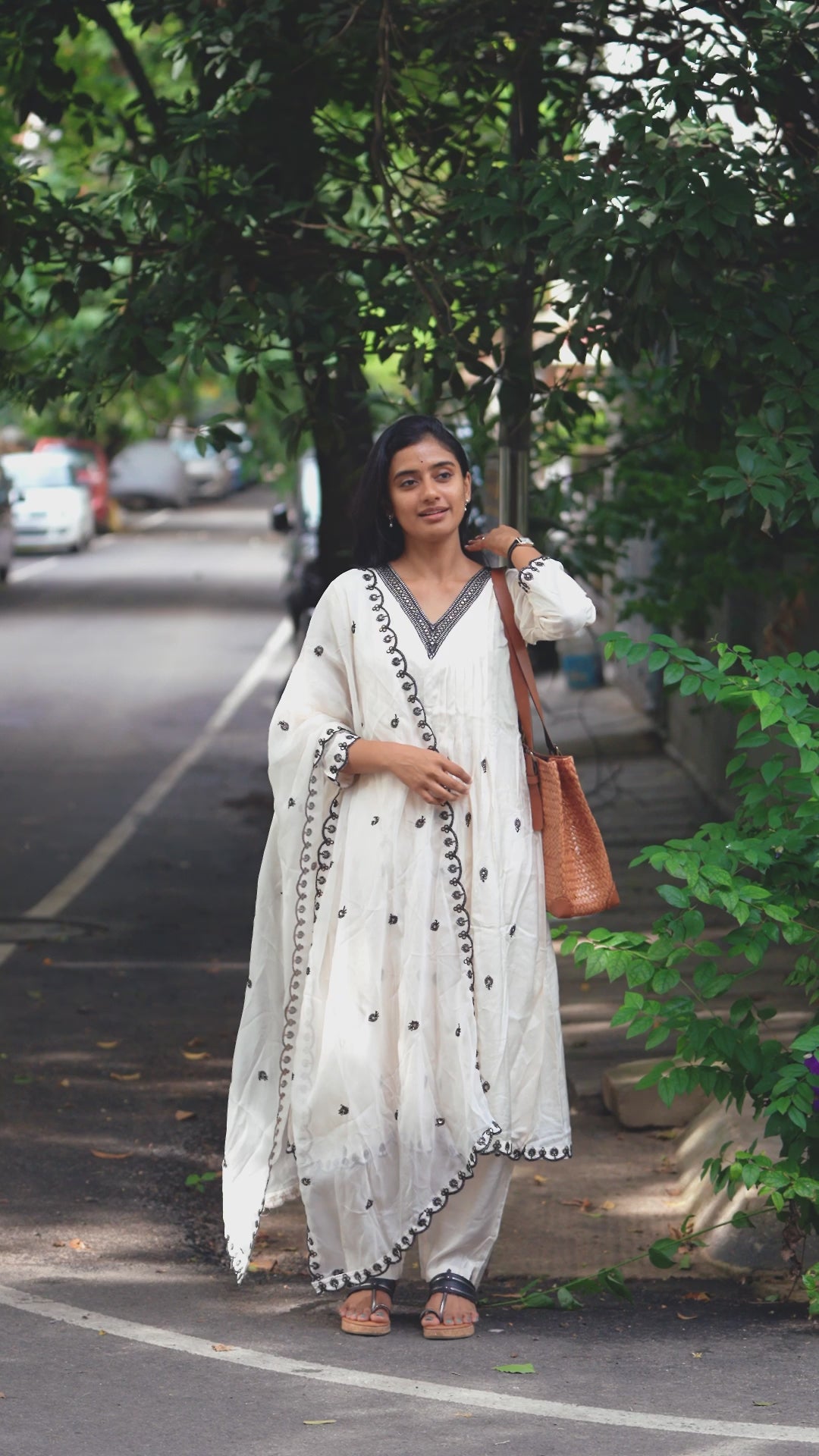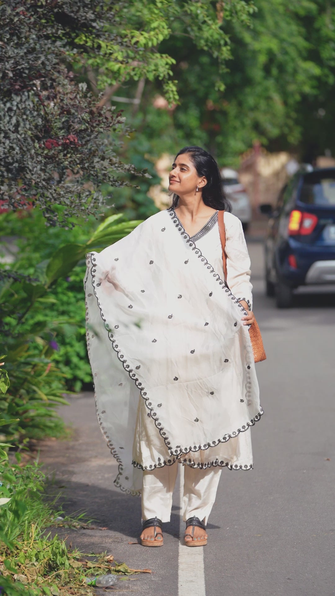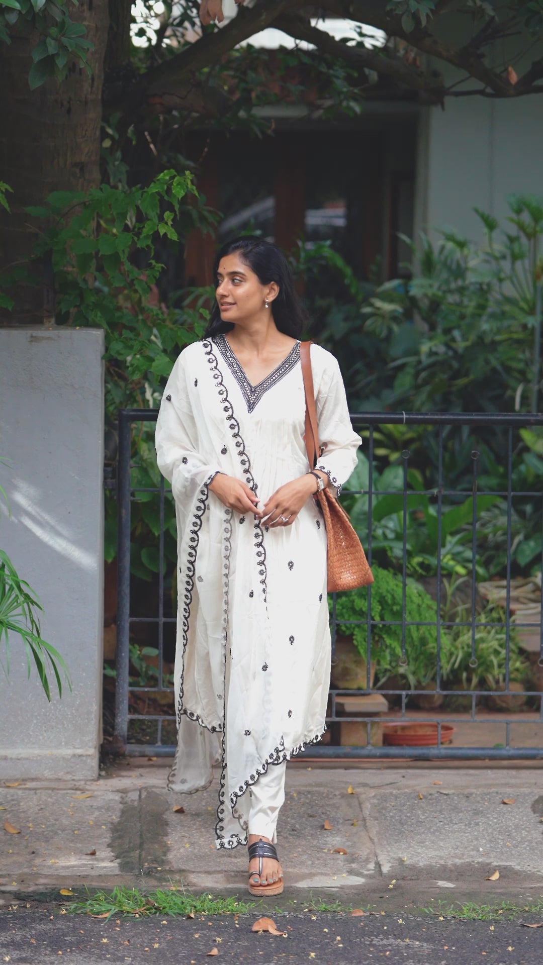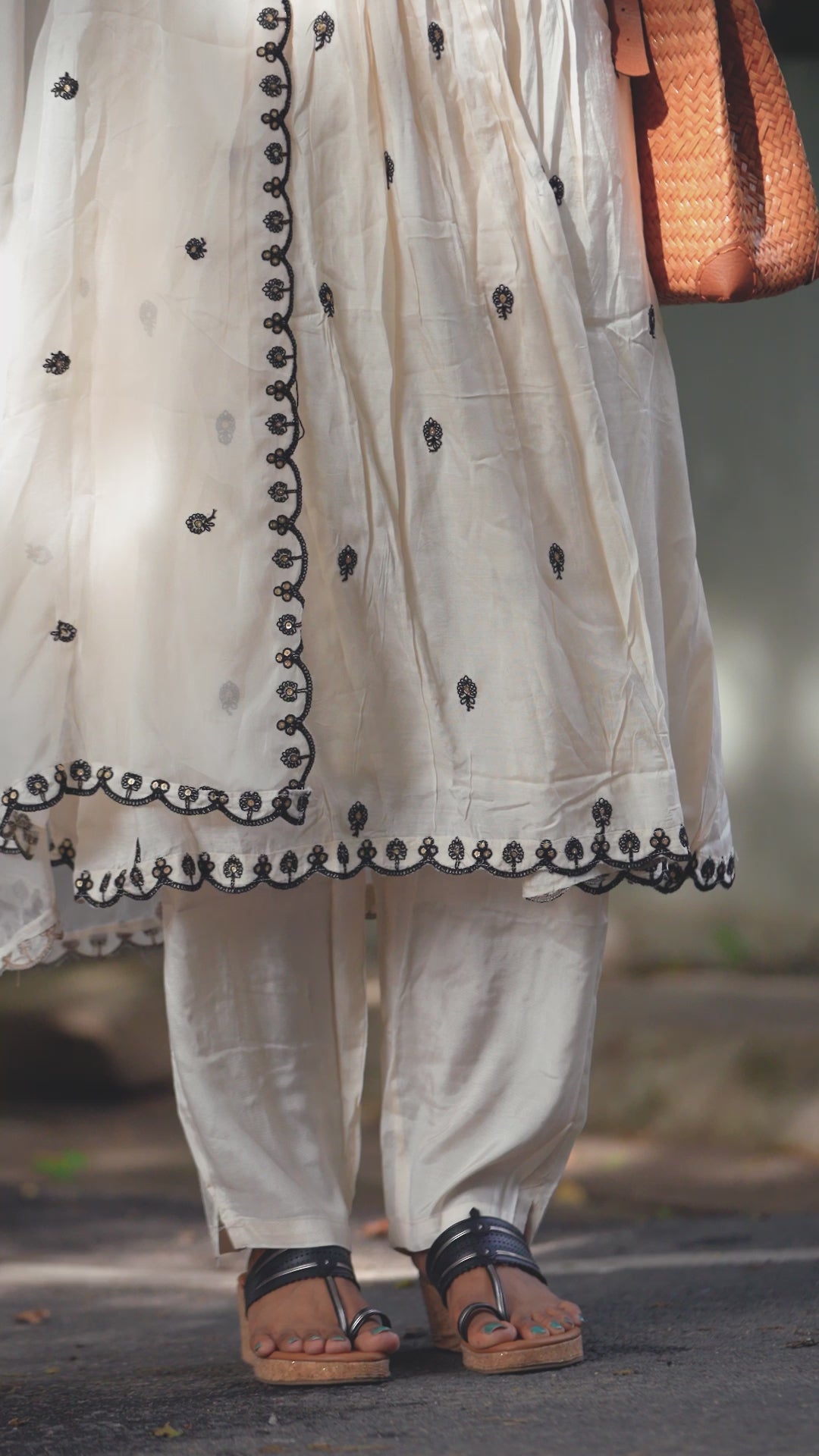 Details: Muslin Anarkali styled Tops with Lace work on neckline paired with straight pants